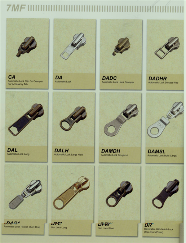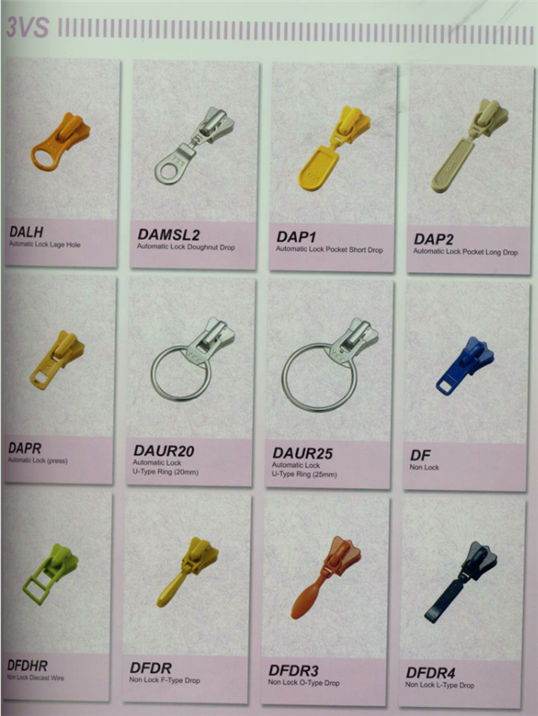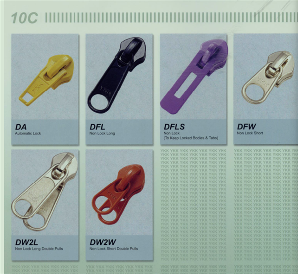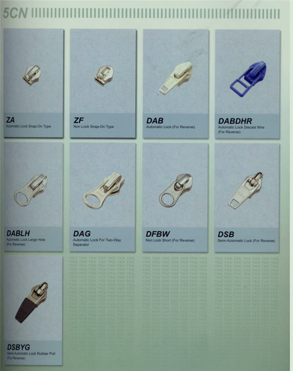 YKK樹脂牙拉鏈及拉頭、YKK金屬牙拉鏈及拉頭、YKK Y牙牛仔系列拉鏈等。